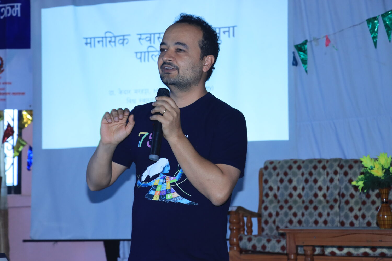 कार्यक्रम विभिन्न चरणमा बैशाख ९ गतेदेखि १३ गतेसम्म सञ्चालन गरिने महाशाखामा कार्यरत मानसिक स्वास्थ्य फोकल पर्सन टेकराज डि.सीले जानकारी दिनुभएको छ ।